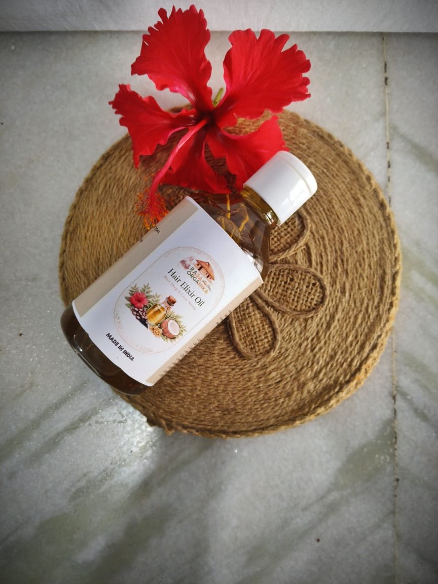RASA Organika Hair Elixir Oil is a premium herbal hair oil formulated with time-tested natural ingredients that deeply nourish the scalp and strengthen hair from the roots.